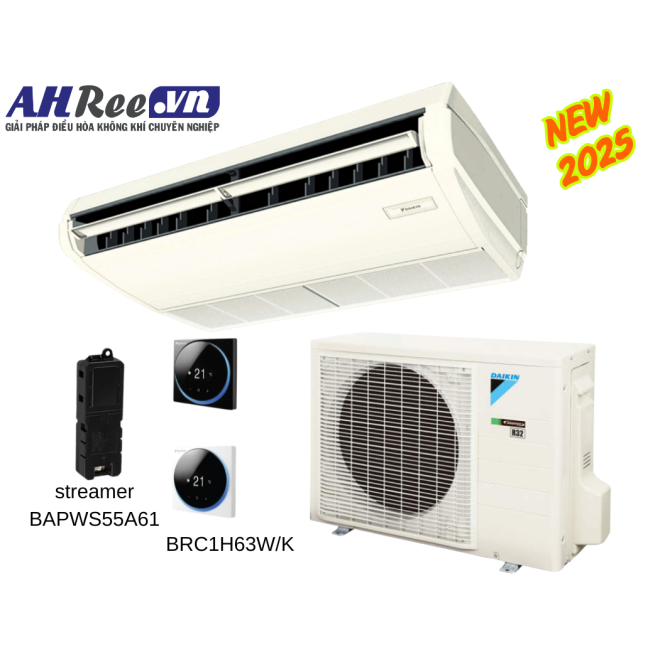Ceiling suspended Daikin - Streamer Inverter 2HP - FHA50DVMV/RZF50DVM + BAPWS55A61 + BRC1H63W/K (1pha, remote dây thời trang trắng / đen + khử mùi Streamer)