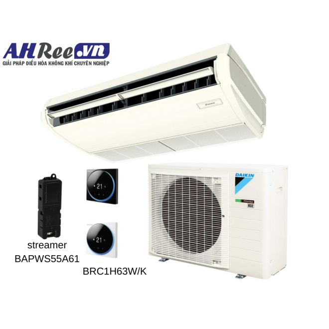 - Ceiling suspended Daikin - Streamer Inverter 4HP - FHA100CVMV/RZF100CYM + BAPWS55A61 + BRC1H63W/K (3pha, remote dây thời trang trắng / đen + khử mùi Streamer)