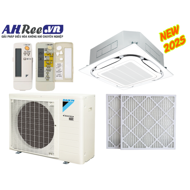 - Daikin Air Conditioner Ceiling Cassette - Inverter 4HP - FCFC100DVM/RZFC100EVM(EY1) + BRC7F635F9 + BYCQ125EAF8 + BAF552A160 (1phase/3phase, Wireless controller, filter PM2.5-Merv 8)