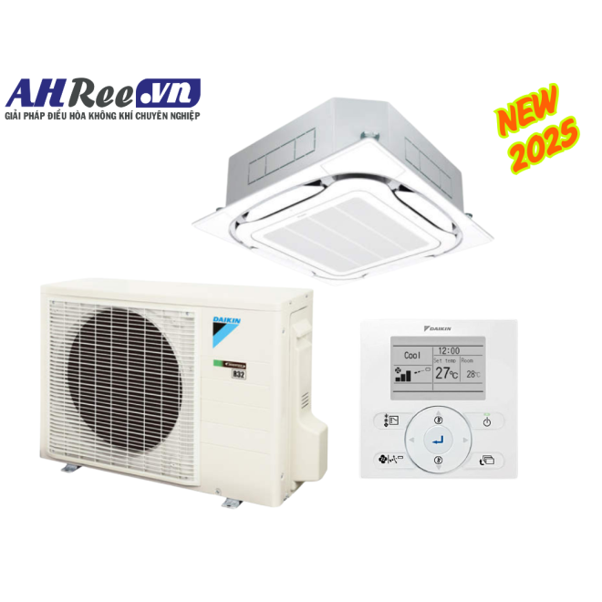 - Daikin Air conditioner ceiling cassette Inverter High COP – 2.5HP - FCF60CVM/RZF60DVM + BRC1E63 + BYCQ125EAF8 (1phase, wire controller)