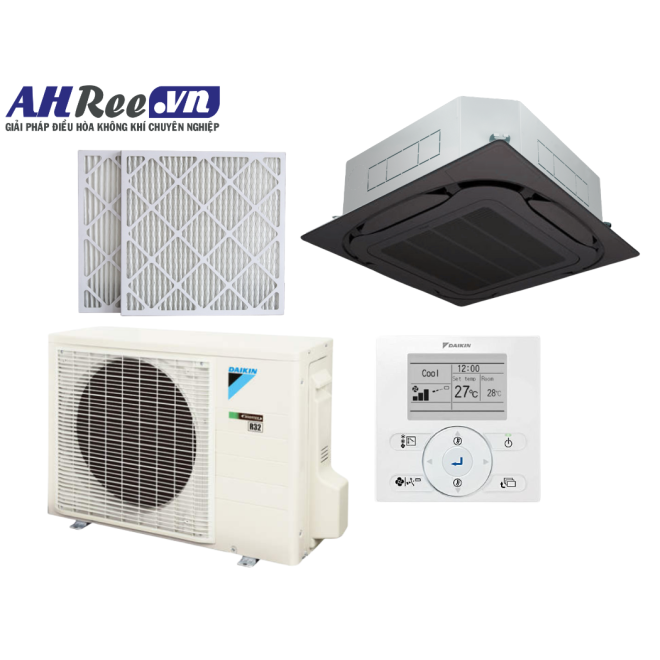 - Daikin Air conditioner ceiling cassette Inverter High COP – 2.5HP - FCF60CVM/RZF60DVM + BRC1E63 + BYCQ125EAK + BAF552A160 (1phase, wire controller, Black panel, filter PM2.5-Merv 8)