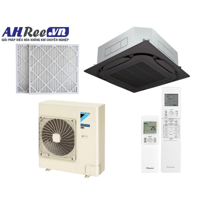 Daikin Air conditioner ceiling cassette Inverter High COP – 5.5HP - FCF140DVM/RZF140DVM + BRC7M635K + BYCQ125EAK + BAF552A160 (1phase, wireless controller, Black panel, filter PM2.5-Merv 8)