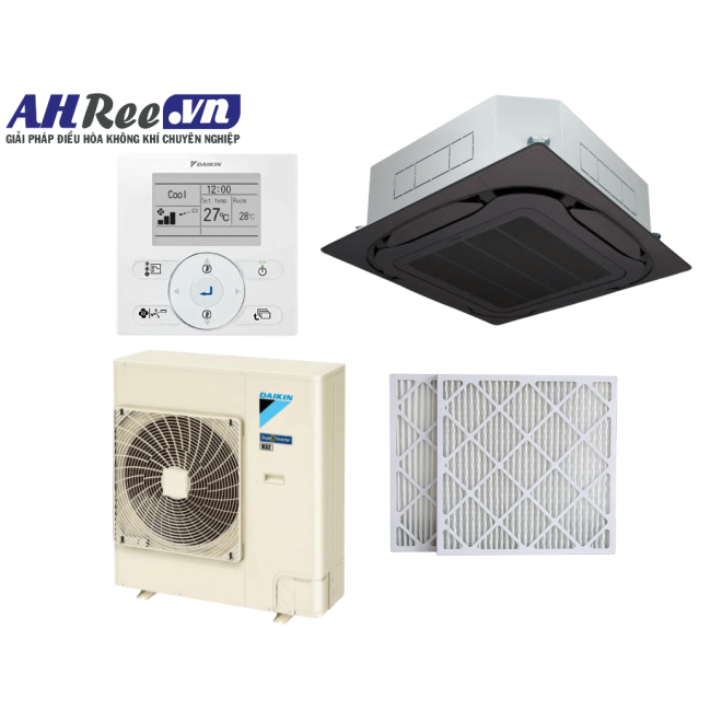 - Daikin Air conditioner ceiling cassette Inverter High COP – 5HP - FCF125CVM/RZF125CYM + BRC1E63 + BYCQ125EAK + BAF552A160 (3phase, wire controller, Black panel, filter PM2.5-Merv 8)