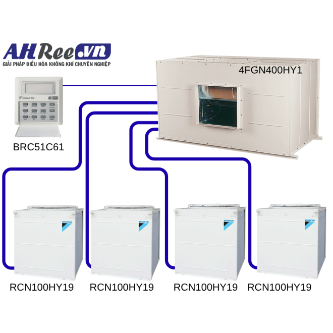 - Duct connection -Non-inverter 40HP - 4FGN400HY1/RCN100HY19x4 ( 3pha, remote dây, không bơm nước, không gas R410A)