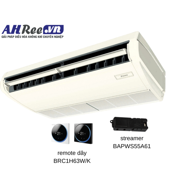 - Máy lạnh Daikin áp trần - Inverter cao cấp Streamer 5HP - FHA125CVMA/RZF125CYM + BAPWS55A61 + BRC1H63W/K (3pha, remote dây thời trang trắng / đen + khử mùi Streamer)